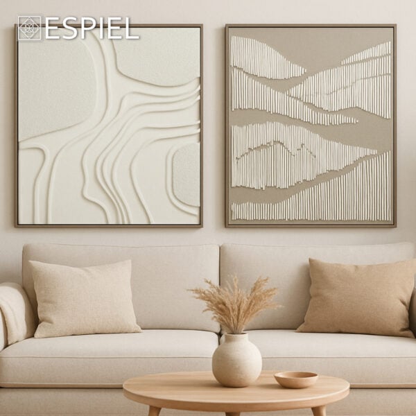 ΠΙΝΑΚΑΣ ΜΕ ΚΟΡΝΙΖΑ ΞΥΛΙΝΗ ΚΑΙ ΥΦΑΣΜΑ 3D ΜΠΕΖ 60Χ80Χ3ΕΚ – ESPIEL – NIM114