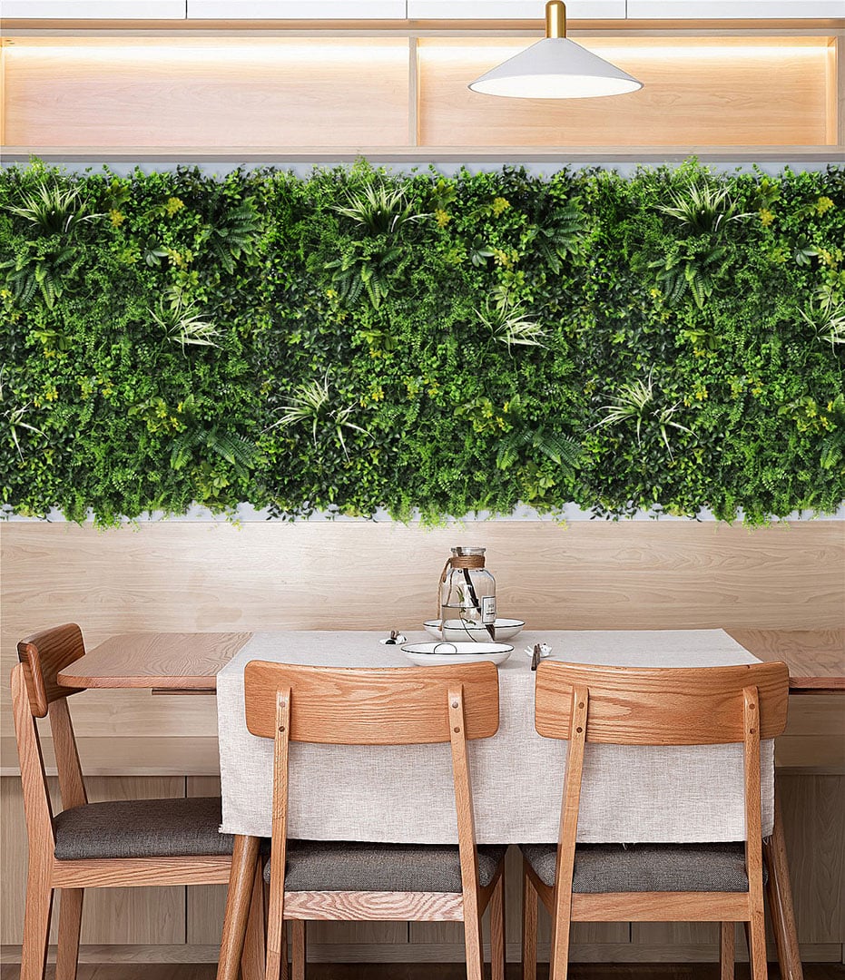 Συνθετικό διακοσμητικό πάνελ με πυκνή φυλλωσιά, σε πλακίδιο 1m x 1m. Έχει τρισδιάστατη όψη και δίνει μια αίσθηση ζωντάνιας και φυσικότητας στον χώρο σας. Διακοσμήστε τον εξωτερικό ή εσωτερικό χώρο σας με τα πάνελ φυλλωσιάς και δημιουργήστε έναν μοναδικό κάθετο κήπο.