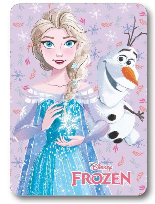 Κουβέρτα Fleece, βάρους 220 gr/m² κάτι που την καθιστά ζεστή, για την κούνια και την βόλτα με το μωρό σας, διαστάσεων 100X140 cm. Κατασκευασμένη από 100% Polyester ύφασμα, με σχέδιο ψηφιακής εκτύπωσης που απεικονίζει την αγαπημένη ηρωίδα της Disney, Elsa μαζί με τον πιστό της φίλο, Olaf. Συσκευασία polybag.