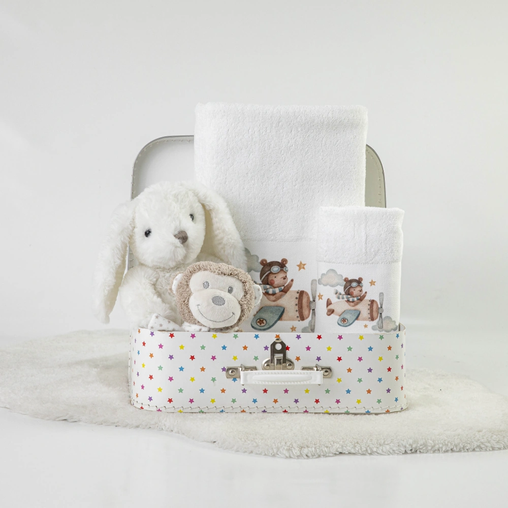 Σετ πετσέτες 2 τεμαχίων, μπάνιου και χειρός, από ύφασμα φροτέ πενιέ, 100% βαμβακερό, μονόχρωμο, λευκό, με ψηφιακή εκτύπωση, σχέδιο πιλότος.Διατίθεται σε 2 χρώματα.